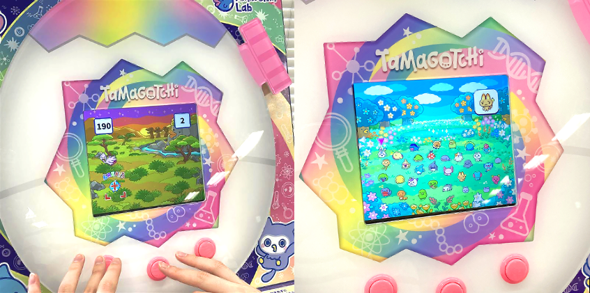 全国の玩具店や百貨店、家電量販店の店頭に設置される大型端末「Lab Tama(ラボたま)」は、育成中のたまごっちを”たまごっちラボに連れて行く”という世界観を体験できるデバイスです。ユーザーが所有する「Tamagotchi Paradise」本体を専用トレイにセットすると、端末との通信が開始され、限定アイテムのダウンロードや限定のたまごっちとのブリードなどのコンテンツを楽しむことができます。