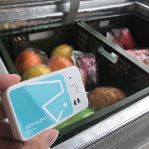 肉や魚などは、温度が上がると腐敗の危険があります。従来は大きな冷蔵庫や冷蔵トラックで流通してきましたが、コストも人手も必要です。物流業者として誰でも参画可能にしたく、専用の保冷バッグに食品を入れるだけで、位置や温度を遠隔で管理でき、温度上昇時には通知を受け取れる仕組みをつくりました。これらはSORACOMのサービスで、クラウド上のシステムにスムーズに連携しています。