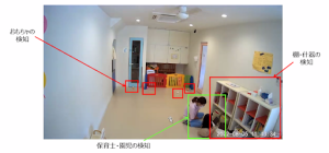具体的には、ソラカメで保育室をリアルタイムに撮影し、九州工業大学と共同で開発中のAIでその映像を分析。危険箇所が検出された場合に、保育士が持つスマホやタブレット、園で使用するパソコンに表示されるほか、危険発生時にはリアルタイムで通知され、即時に危険回避行動がとれるようにしたいとのこと。