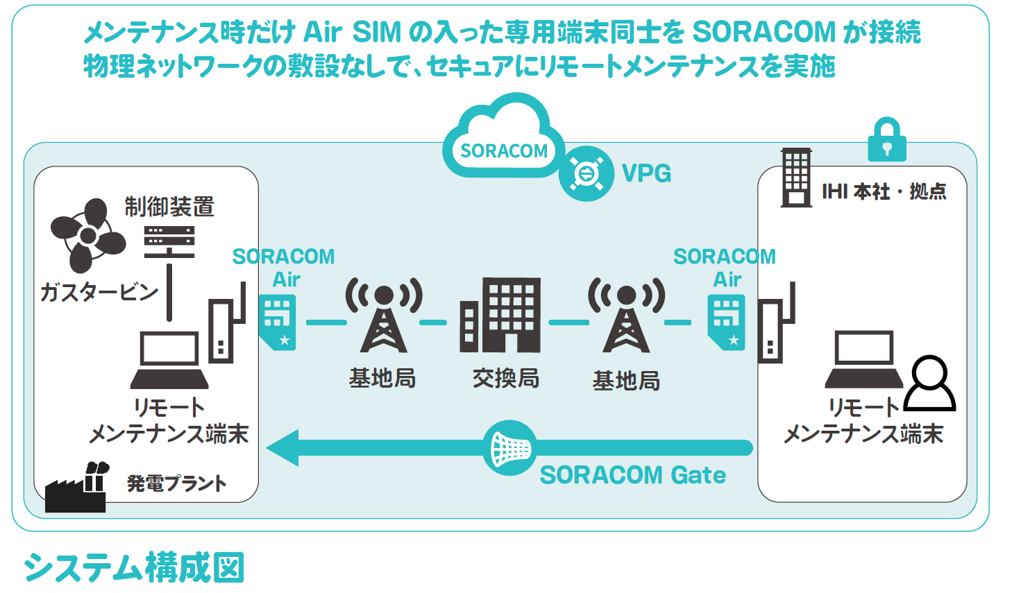また、IHIがこれまで納入したガスタービン発電設備の半数以上が海外に設置されていますので、SORACOM Air for セルラーのグローバル向けなら、日本での契約が可能で、1枚のSIMで世界どこでも利用ができる点も大きなメリットです。